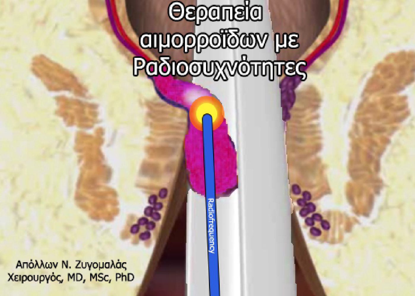 Οι Ραδιοσυχνότητες (RF) αποτελούν καινοτόμο τεχνική εξέλιξη για την αντιμετώπιση των αιμορροΐδων. Με τη νέα αυτή ελάχιστα τραυματική χειρουργική θεραπεία μειώνεται ο χρόνος της χειρουργικής επέμβασης αλλά κυρίως ο μετεγχειρητικός πόνος. Ο ασθενής φεύγει από το νοσοκομείο λίγες ώρες μετά από την επέμβαση και την επόμενη ημέρα επιστρέφει στις καθημερινές του δραστηριότητες. Στα πρώτα δύο στάδια αιμορροϊδοπάθειας οι ραδιοσυχνότητες "καταστρέφουν" τις αιμορροΐδες και τις συρρικνώνουν, ενώ σε πιο προχωρημένα στάδια το νυστέρι ραδιοσυχνοτήτων χρησιμοποιείται για την αφαίρεση των παθολογικών αιμορροΐδων. Λόγω του τρόπου λειτουργίας του, προκαλεί ελάχιστη βλάβη στους ιστούς με αποτέλεσμα την καλύτερη και γρηγορότερη επουλώσει αλλά και την μείωση του πόνου.