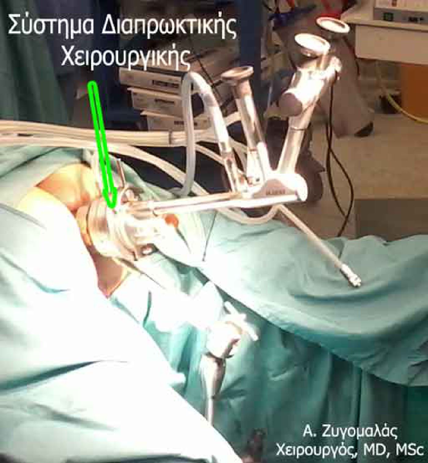 Μια άλλη ελάχιστα επεμβατική τεχνική για την αντιμετώπιση παθήσεων του τελικού τμήματος του παχέος εντέρου (ορθού) είναι η Διαπρωκτική Ενδοσκοπική Μικροχειρουργική (Transanal Endoscopic Microsurgery ή ΤΕΜ). Με την τεχνική αυτή δύναται να αφαιρεθούν δια του πρωκτού μεγάλοι πολύποδες ή υπό προϋποθέσεις μικροί καρκίνοι, χωρίς καμία τομή στην κοιλιά και με ελάχιστες επιπλοκές.